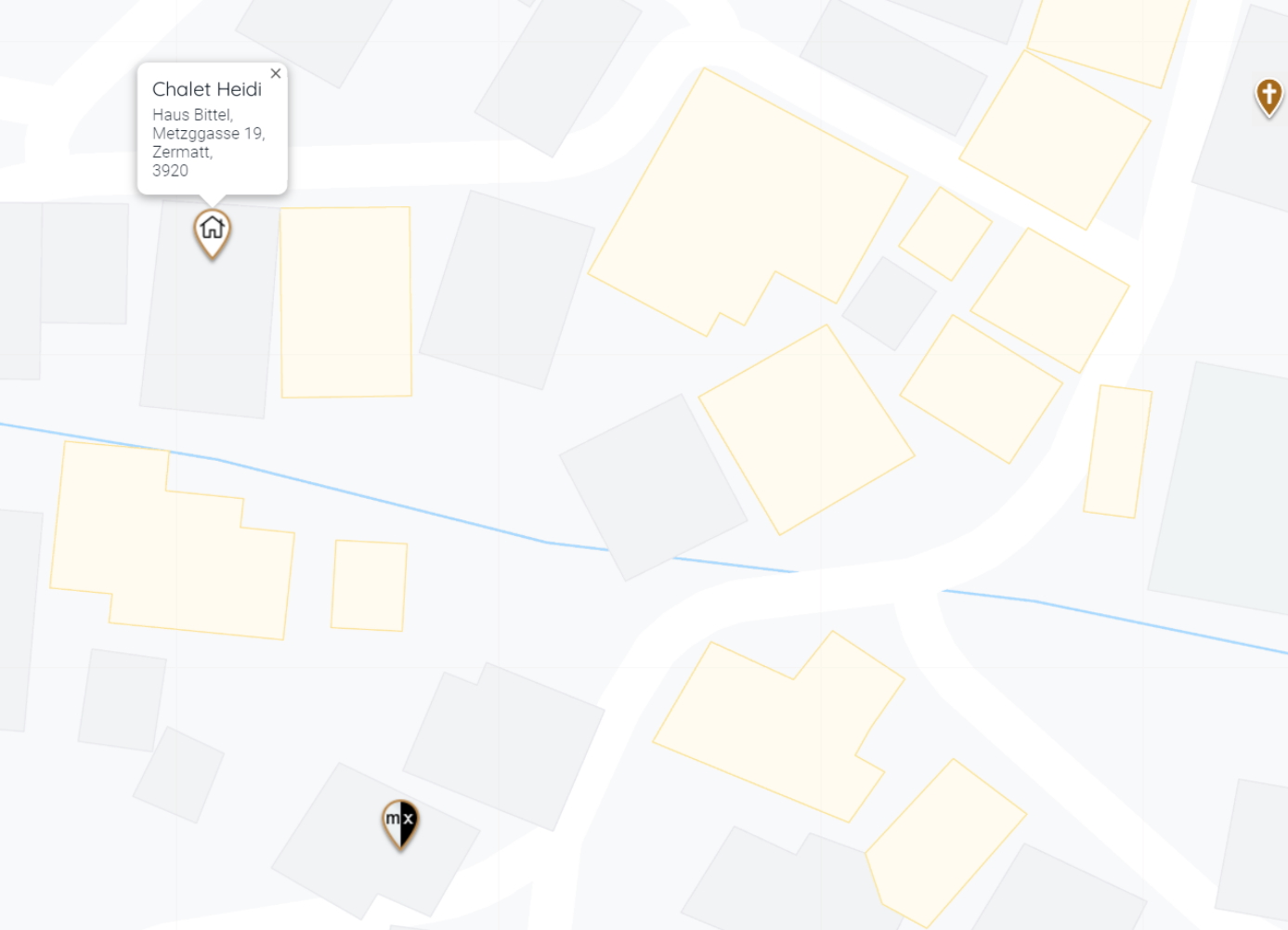 From the station you have to go to the Haus Bittel, Metzggasse 19, 3920 Zermatt, here on google maps.
