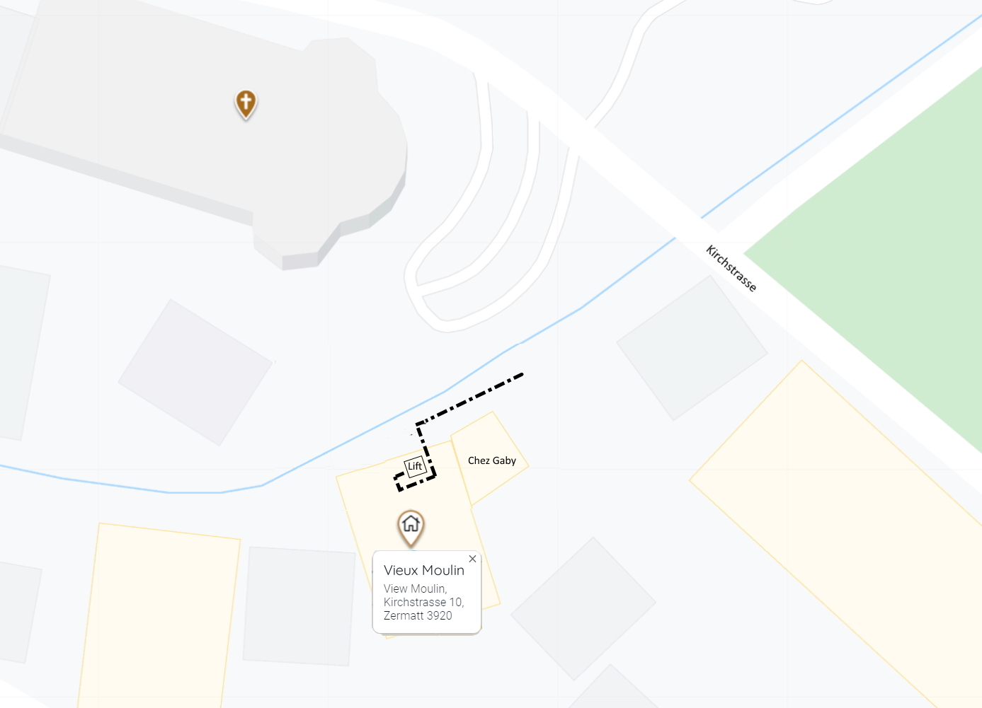 Walk past the restaurant down the path next to the stream. The entrance to Haus Vieux Moulin (where your studio is located) is a glass door on your left. The door will be open until 20:00 (if you are arriving later please let us know to make alternative arrangements).