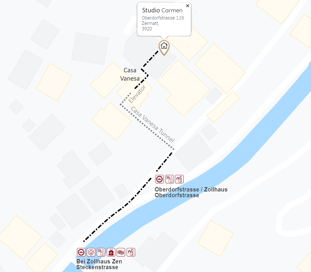 Below you can see the closest waste disposal points to Carmen Studio, which are on the main street, turning right as you exit the tunnel.