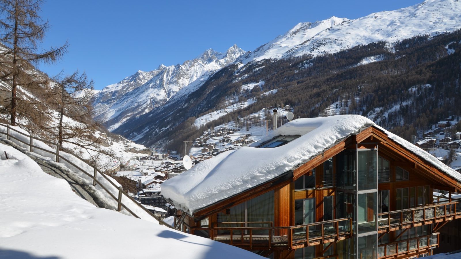 – Fenster und grosse Terrasse mit herrlichem Blick auf das Dorf und die Mischabelberge