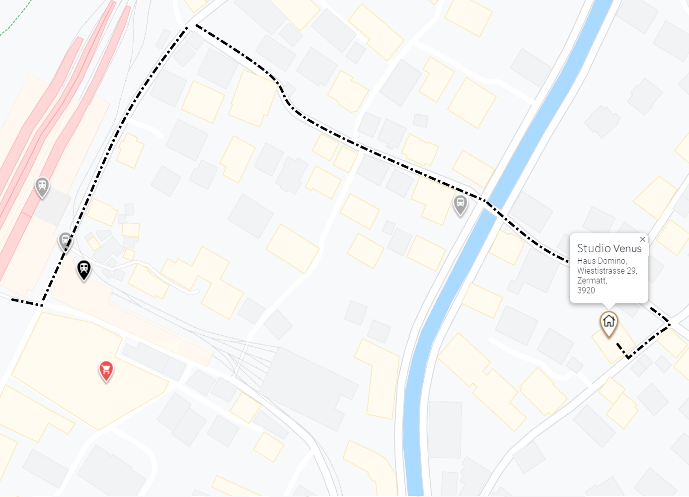 Please note that you can also walk back into Zermatt by turning right out of the building and this will bring you down to the river.
