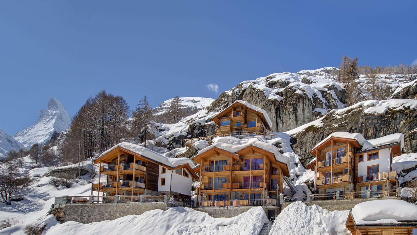 Leur emplacement offre le meilleur des deux mondes : des vues spectaculaires et un accès facile. À 200 mètres de la station de base du Matterhorn Express et de la piste de la station, un tunnel au niveau de la rue mène à un ascenseur construit à l’intérieur de la montagne, d’où l’on accède aux propriétés en 2 minutes de marche et par un escalier extérieur. Les chalets sont équipés d’un chariot électrique et d’un monte-escalier, que notre personnel utilisera pour transporter vos bagages et vos achats si nécessaire.
