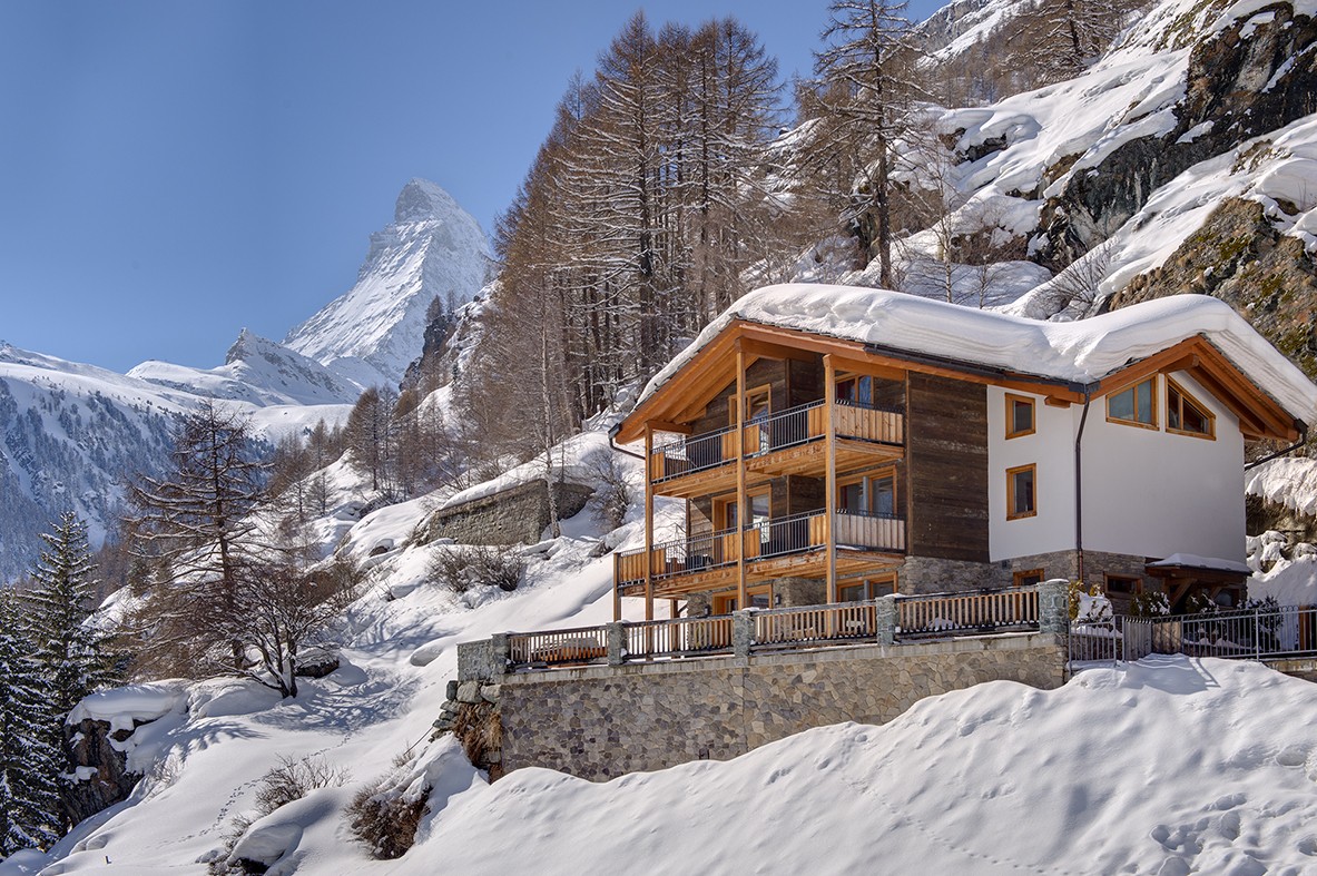Zermatt luxury catered and self-catered Chalets Les Perles se compose de nos quatre résidences voisines, très rares à Zermatt, louées comme une seule unité à l’usage exclusif d’un groupe plus important, à savoir le Chalet Pollux, le Chalet Gemini, le Chalet Castor et le Chalet Ibron. Ces quatre chalets de ski indépendants en triplex sont situés à moins de 10 mètres les uns des autres, ce qui en fait un lieu de retraite idéal pour un groupe plus important pouvant compter jusqu’à 34 personnes.