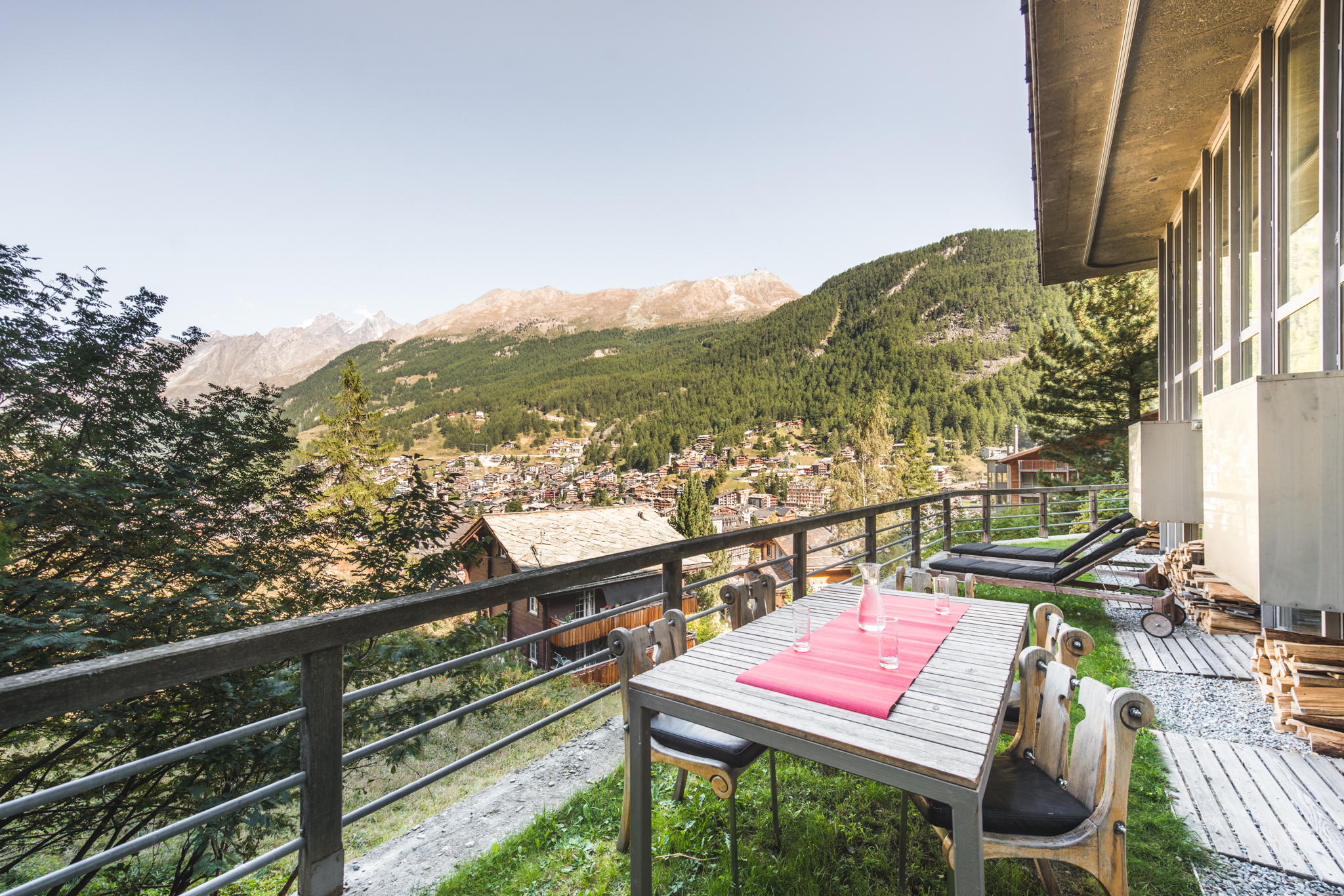 – Immenses fenêtres avec vue sur le village et les montagnes Mischabel