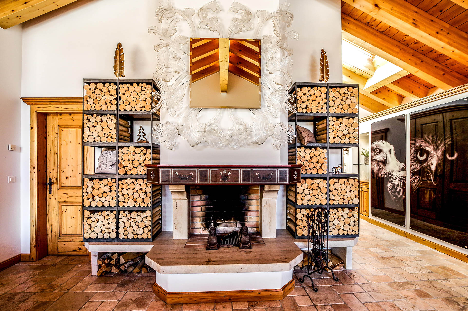 Le salon très spacieux est doté d’une cheminée à bois, d’un coin repas et d’une cuisine ouverte bien équipée. La chambre principale et deux des chambres doubles disposent également d’un balcon.