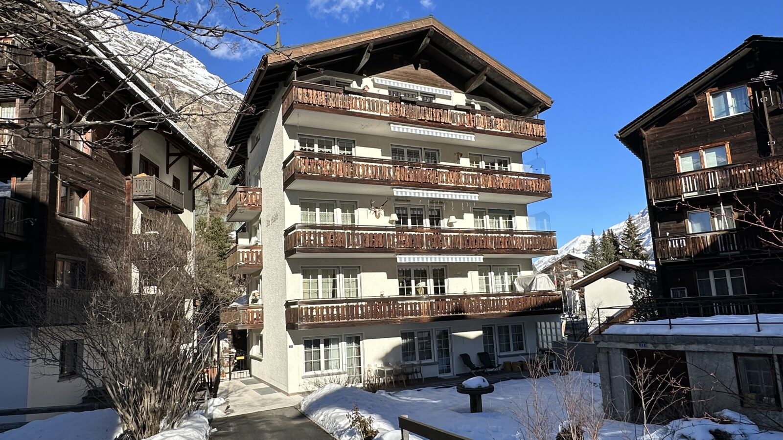 Il est situé en plein cœur de Zermatt, au bout d’une rue calme et sans issue, à côté de l’église et d’une rivière de montagne.