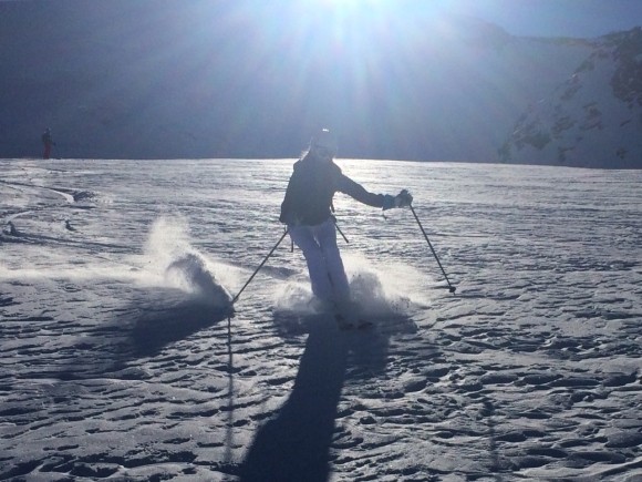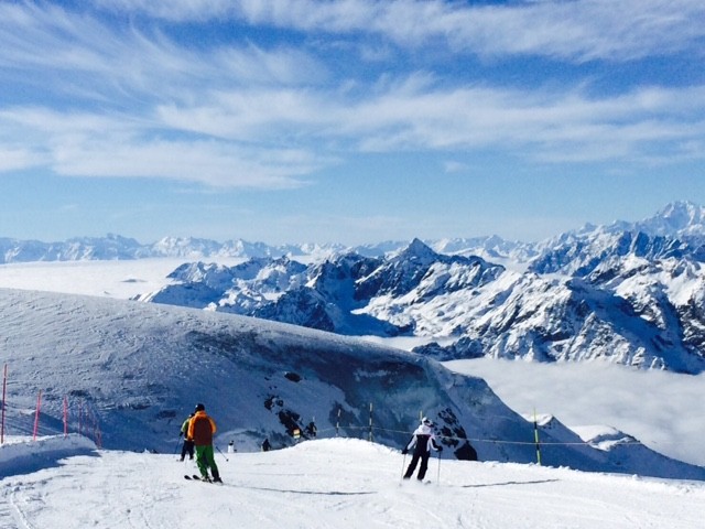 Above: the piste from Klein Matterhorn with a view over the Italian side. Below: powder snow last week.