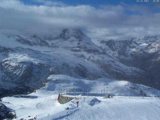 Skiing conditions are exceptional in Zermatt. Both resorts were perfectly positioned to receive the brunt of the recent depression from the gulf of Genoa – it snowed continuously for 5 days above 2,500 metres. Across Zermatt and Cervinia there are 20 lifts and 26 runs open. Snow conditions in all three areas are beautiful and powdery. The image below is taken from the Gornergrat webcam: