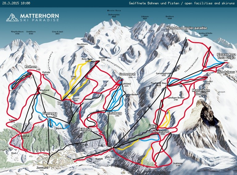 We have had several snowfalls since our last update which has given us a lot of great off-piste skiing and wonderful pistes which are still in winter condition above 2,000m. As you can see from Saturday's ski status map below, all lifts are running and all runs are open. It's the best time of year for skiing in Zermatt!