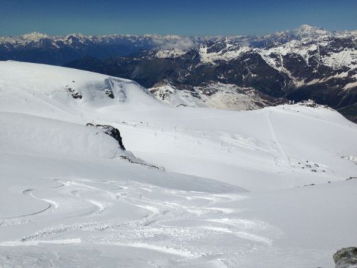 You have an astonishing 1,000m of vertical, more than many winter resorts! All the skiing is on glaciers, there is a snow park, and you can watch the numerous national ski race teams training, then have lunch on the border with Italy. It's a great experience – have a look at this short video we made with Rowena our bookings manager and ski instructor.
