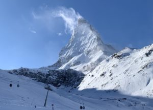 The Matterhorn clad in fresh snow and the Matterhorn Express December 21st
